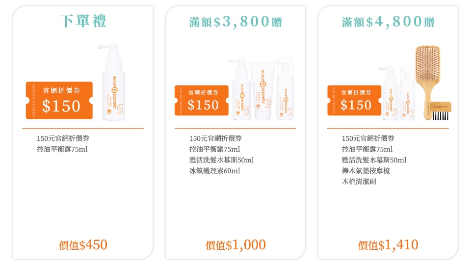 下單禮(150元官網折價券+控油平衡露75ml)+甦活洗髮水慕斯50ml+頭皮調理精華露20ml+銀離子櫸木氣墊按摩旅行梳