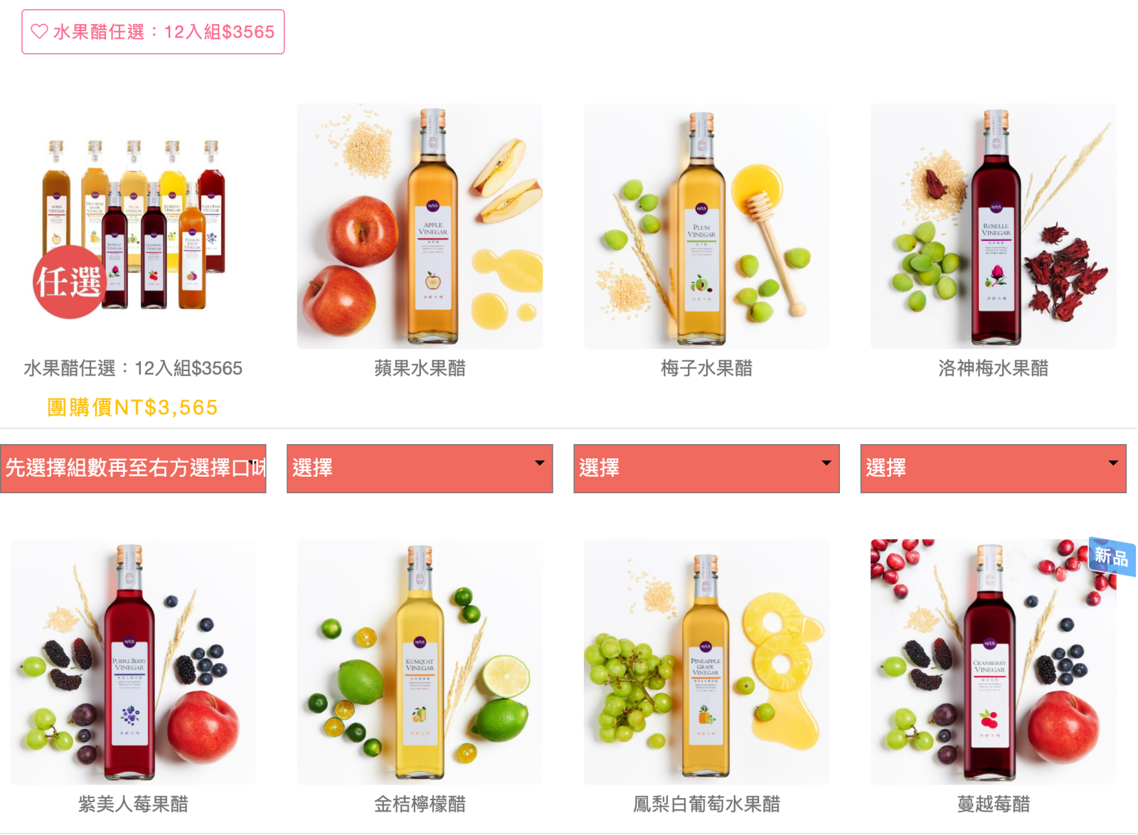 有6+2大經典口味的天然水果醋、養顏美容的珍珠美人醋、可料理可飲用的巴薩米克醋,