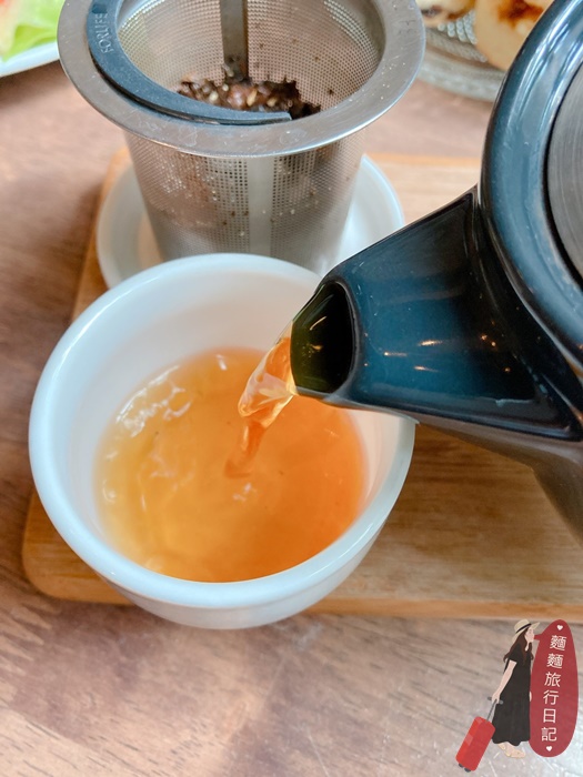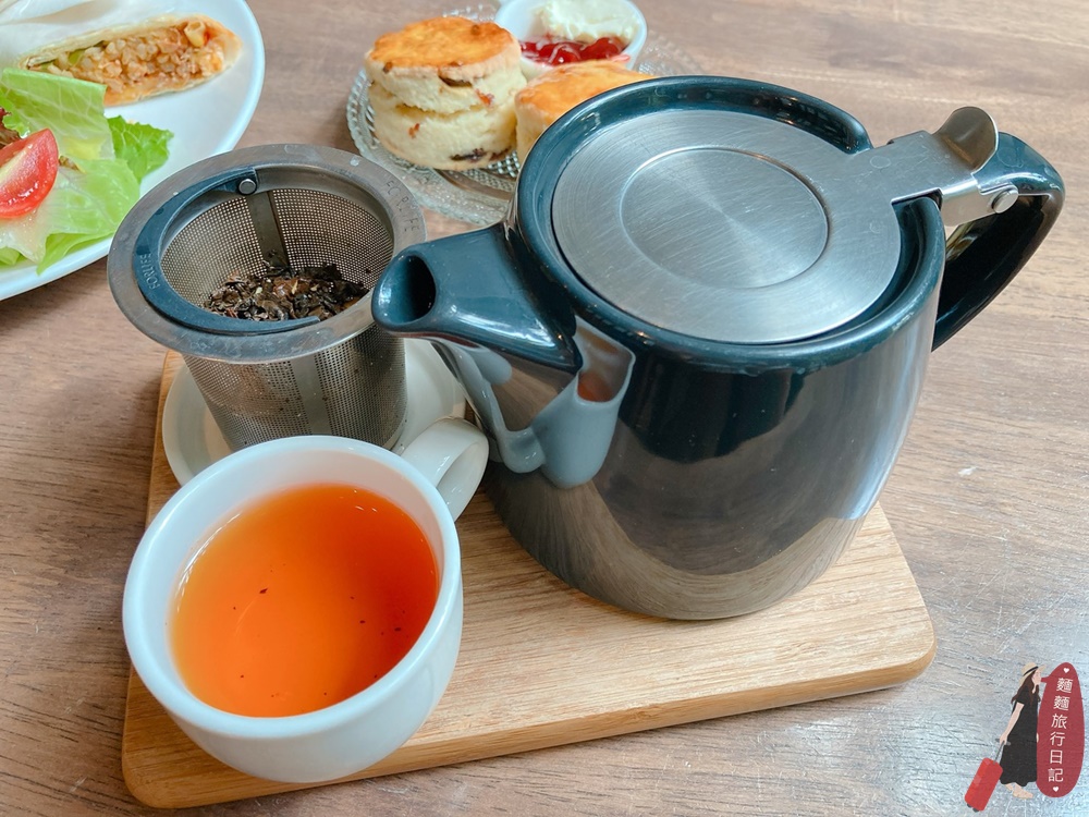 柚花紅茶是熱飲,一整壺還滿大壺,溫溫熱熱的喝起來非常溫潤順口,很適合拿來搭配甜點!店員會把茶葉拿出來在端上桌,喝完後可以把茶葉放回茶壺裡請店員回沖