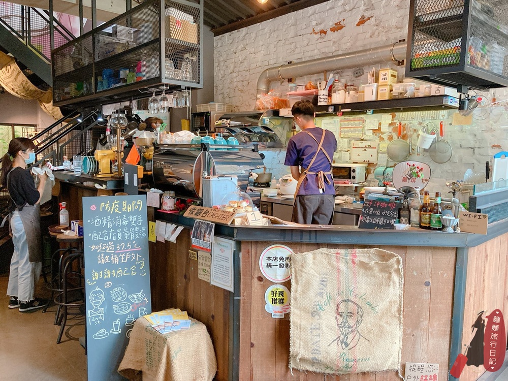 一推開二街咖啡廳大門就看見忙碌的工作人員正在吧檯準備餐點與咖啡給客人,吧檯是半開放式空間。
