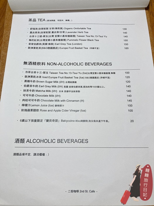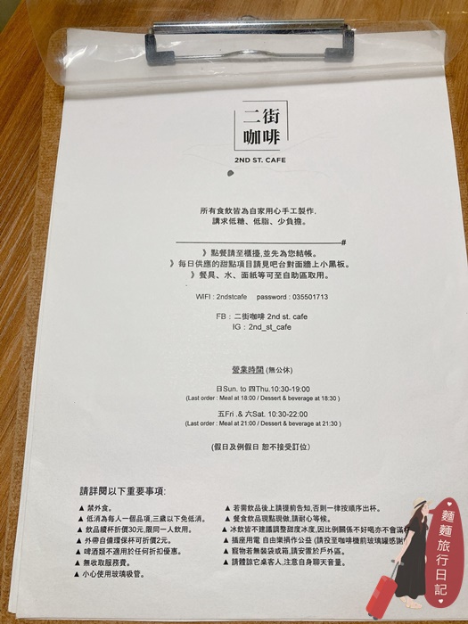 二街咖啡每人低消任選一品項,三歲以下免低消!