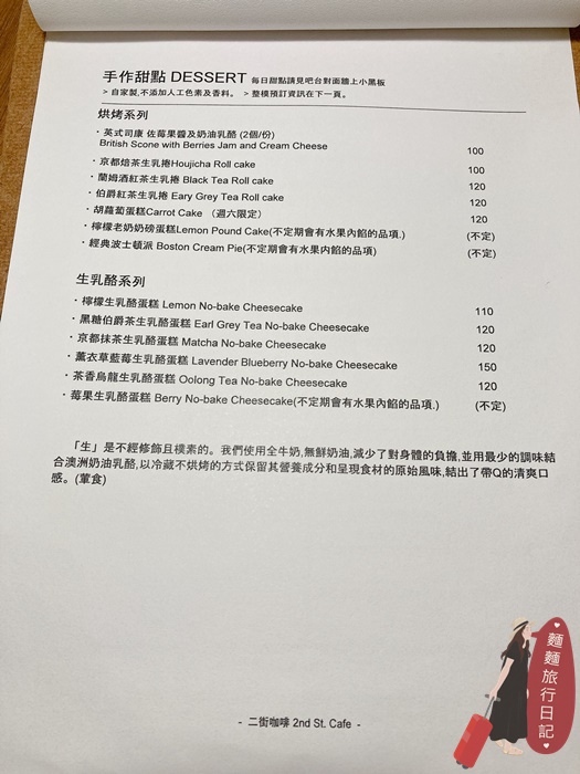 二街咖啡每天製作的甜點都不一樣,今天賣什麼甜點都會寫在牆上黑板。