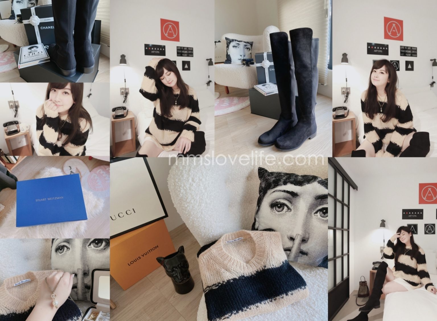 戰利品分享!膝上靴中的夢幻逸品Stuart Weitzman 5050 / BP智秀也穿的Acne Studio條紋毛衣 / Gucci Logo 珍珠長鏈