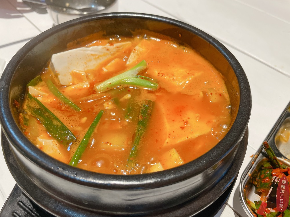 來吃韓國料理村長必點就是鍋,村長對鍋的要求就是要夠燙夠味喝起來才夠爽啊!我點的是海鮮豆腐鍋,滾燙的鍋一上桌,我就忍不住先喝一口!