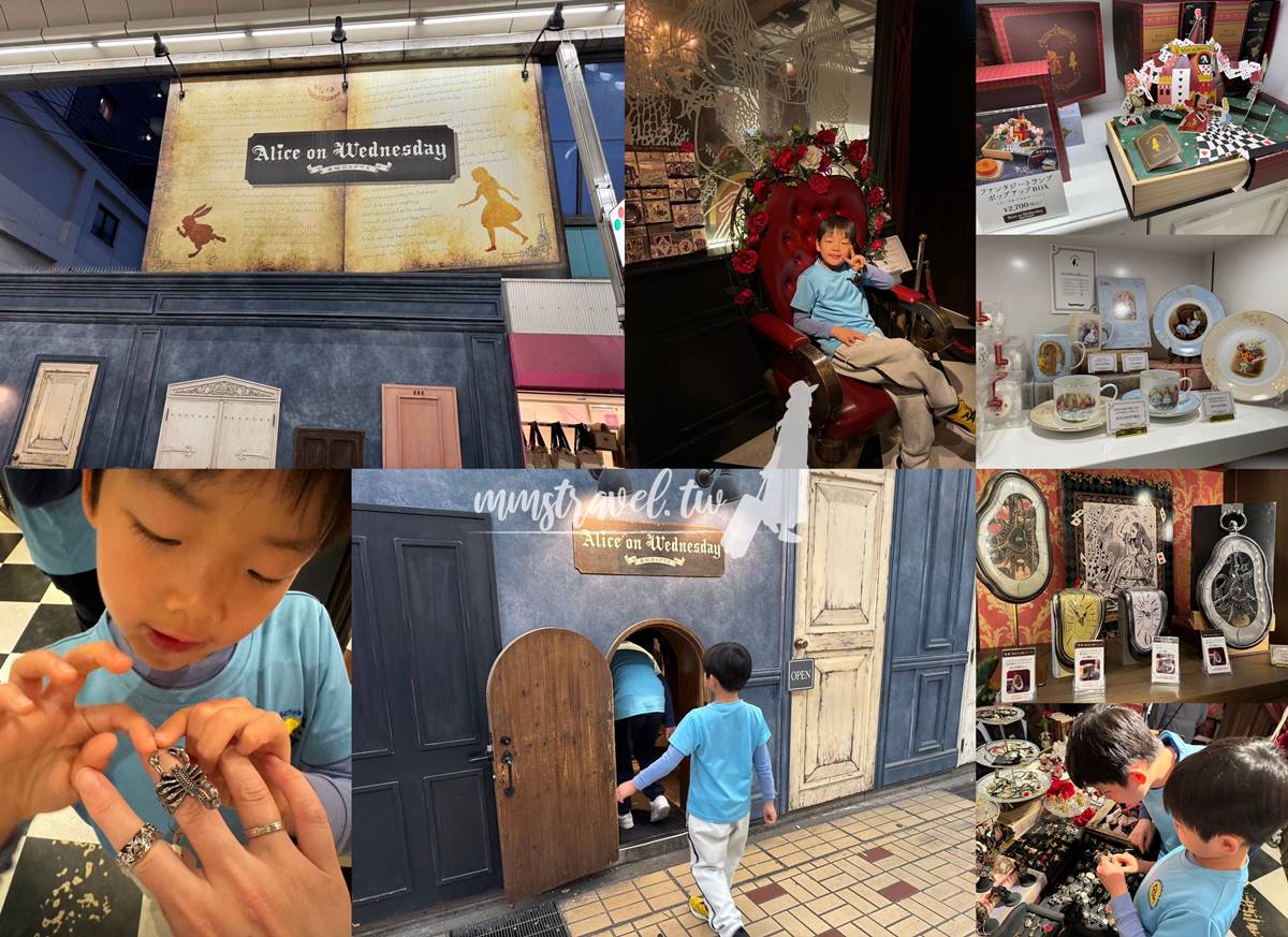 日本名古屋水曜日的愛麗絲超好逛,整間店打造出超夢幻童話故事愛麗絲故事場景,是以愛麗絲夢遊仙境為主題的雜貨飾品店舖,主要販售糖果零食、飾品等商品,店裡完全依照愛麗絲夢遊仙境故事裝潢,讓人仿佛置身於愛麗絲的奇幻世界,我們有一半的時間都在逛這間愛麗絲,每樣東西都很別緻,很有特色,是間值得來細細挖寶的好店,很適合來買伴手禮送朋友家人小孩,來大須商店必逛水曜日的愛麗絲,波仔跟樂樂很像在探險,很喜歡很特別的體驗!