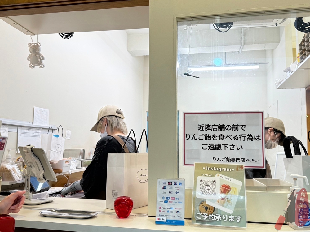 我們去的時候已經是晚上6:30了,所以只剩下原味!原味一杯650日幣,因為沒有座位區,所以櫃台特別標示可以在附近的店家前面享用蘋果。