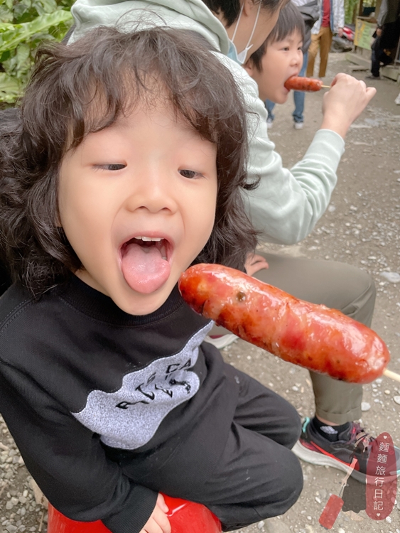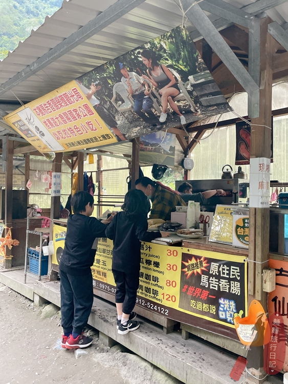 砂卡礑步道中繼站五間屋,我一直鼓勵波仔跟樂樂加油走到了就有香腸吃!