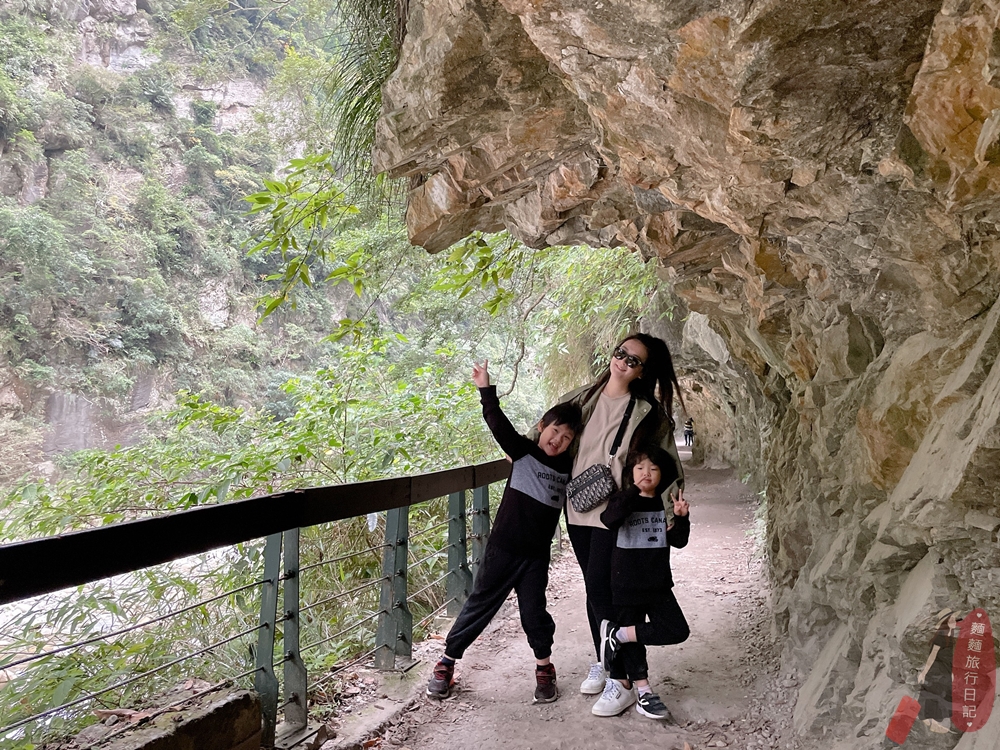 花蓮景點太魯閣砂卡礑步道全長總共是4.1公里,是親子行入門級可挑戰步道,生平第一次在太魯閣挑戰步道,帶著波仔跟樂樂😆,走累了原路折返即可唷!