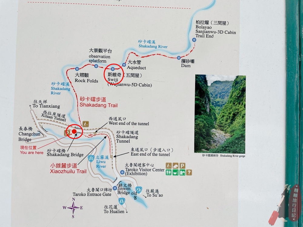 砂卡礑步道在太魯閣國家公園裡,有兩個入口:一個在太魯閣國家公園裡、另一個是砂卡礑橋的步道入口。