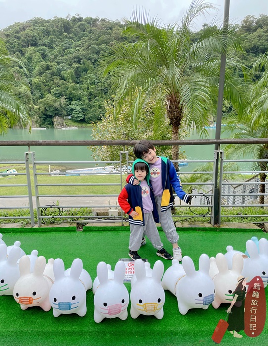 我們去碧潭的那天剛好是陰天,又濕又冷,但是波仔跟樂樂看到可愛的小兔子後整個陽光滿面!跟兔子拍了很多可愛的照片。