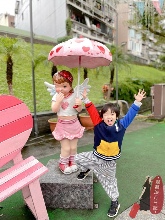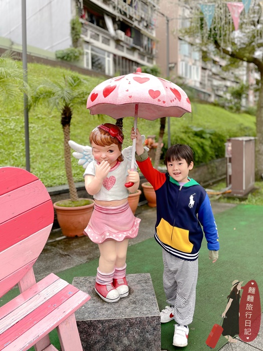 除了藝術節外,碧潭右岸原本就規劃不少裝置藝術,你們猜猜這位是…….哈哈哈是可愛的愛神喔!因為碧潭除了很適合親子行外,也有很多情侶會來這裡約會啦!