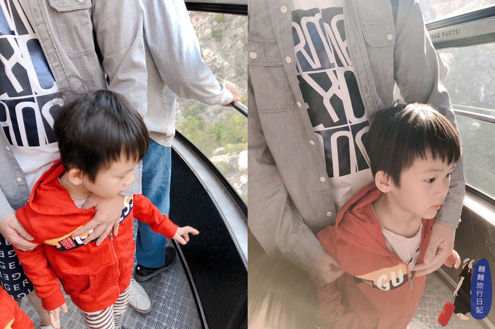 樂樂很嗨,一直想靠近纜車窗邊看風景,大猴史上無敵煩人狀態開啟,一直叫我顧好小孩,牽好牽好,不要讓小孩靠窗太近巴拉巴拉巴拉……..(白眼已翻到後腦勺)