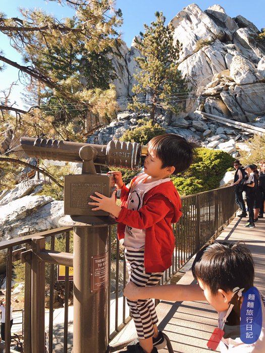 棕櫚泉天空纜車 Palm Springs Aerial Tramway真的給我們一次前所未見的全新感受,從一望無際的沙漠到山頂森林裡;從溫暖的平面到高海拔超低溫的山頂;克羅克從一個腦中的想法到實現這個空中纜車,真的很棒啊~就像我跟大猴當初想帶著波仔跟樂樂到美西旅遊一樣,落實想法之後,真的很不一樣啊~~~搭乘纜車的過程中,可以看見棕櫚泉美麗的沙漠風景、再到狀闊的山脈、峽谷,搭到山頂後又感受到森林裡清新新鮮的空氣,美麗的森林景緻,在制高點往下俯瞰山景,頓時覺得心胸變得超廣大~~~ 我、波仔跟樂樂,超嗨超興奮,一直享受美景!大猴整個過程可能都在害怕當中 😅 如果你沒有懼高症,超推薦棕櫚泉天空纜車!