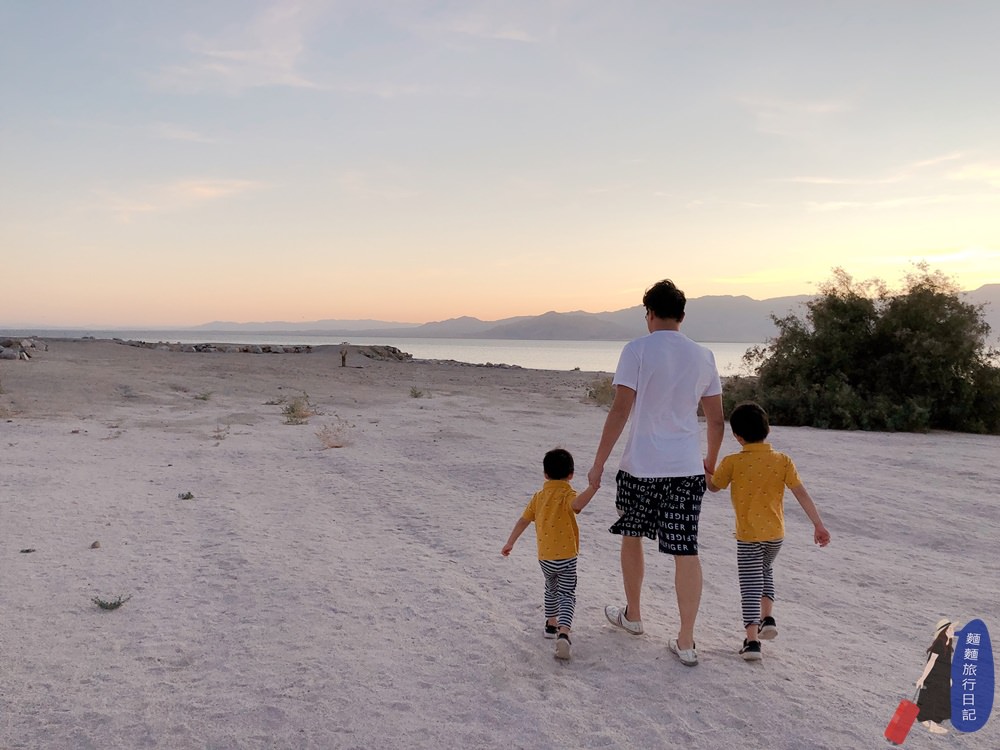 在去完救贖山 Salvation Mountain回程的路上,我們沒有忘記帶孩子一起去看一看神秘的索爾頓湖,索爾頓湖在棕櫚泉Palm Springs的索諾蘭沙漠裡,是加州最大的湖泊,大到你會以為他是海不是湖的那種,為什麼沙漠裡會有一座那~麼~~大~~~的湖泊呢!?