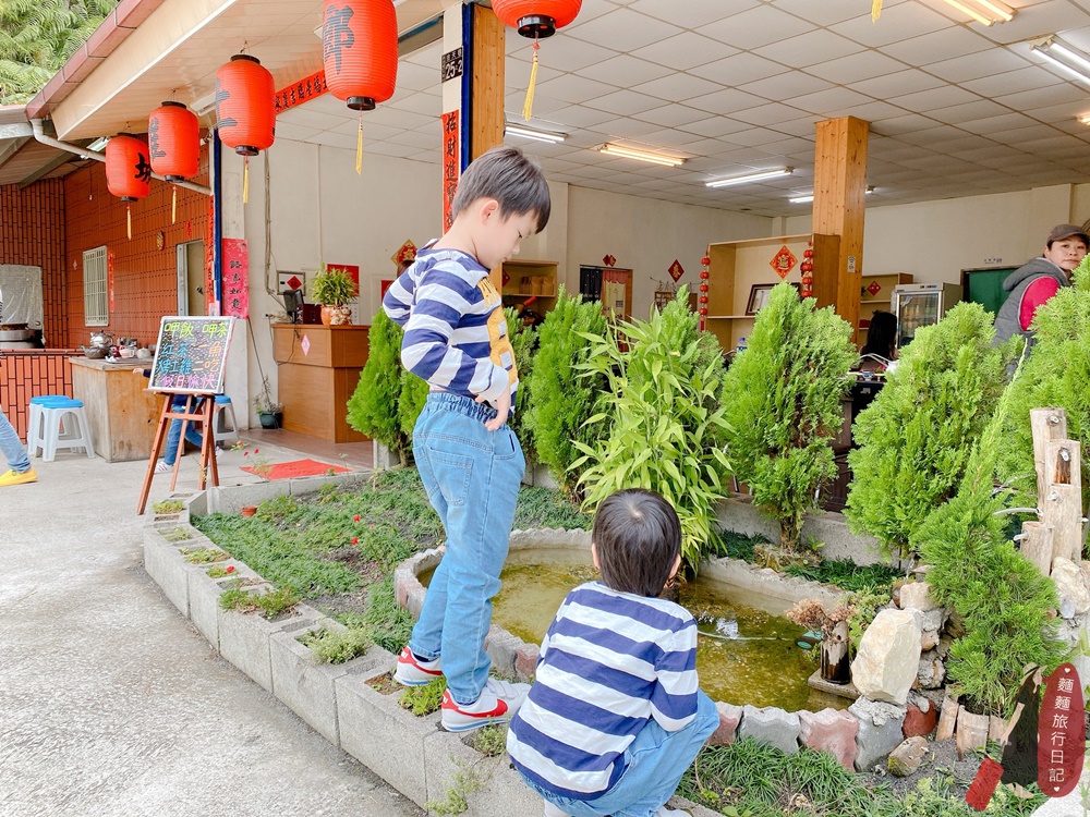 餐廳前面有一個小水池,有水的地方就能把你的小孩吸引過去!