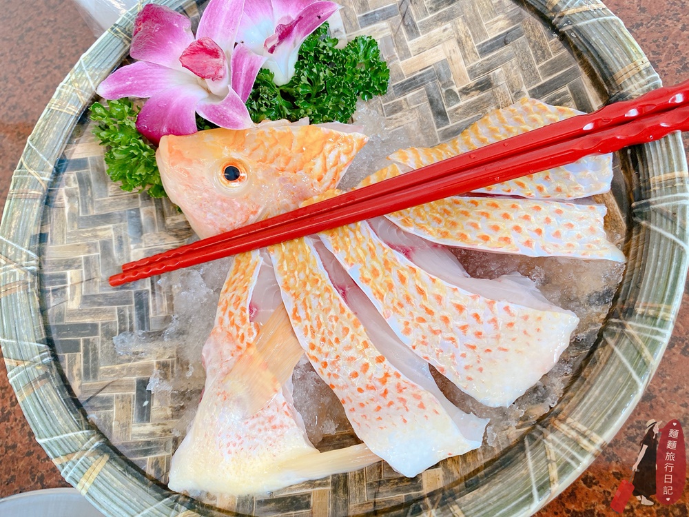 餐廳有停車場,車位大約有10個,旁邊就是餐廳自己養的紅鯛魚!現撈先煮!