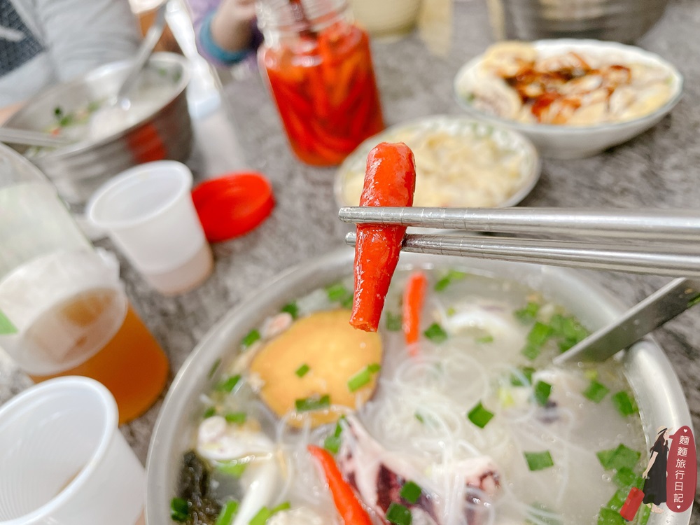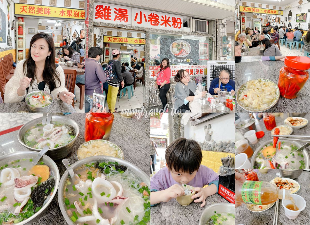花蓮美食單一純賣 雞湯小卷米粉是來花蓮必吃的在地小吃,店裡只賣雞湯小卷米粉跟什錦雞湯米粉,生意還是好到爆!不管平日還是假日都人潮滿滿,要排隊才吃的到!除了米粉外,老闆自製的水果泡菜、醃泡椒也是每桌必點,跟台南的小卷米粉不一樣,值得一吃!