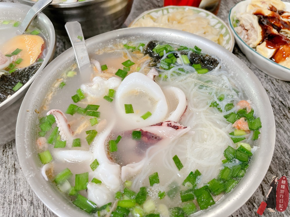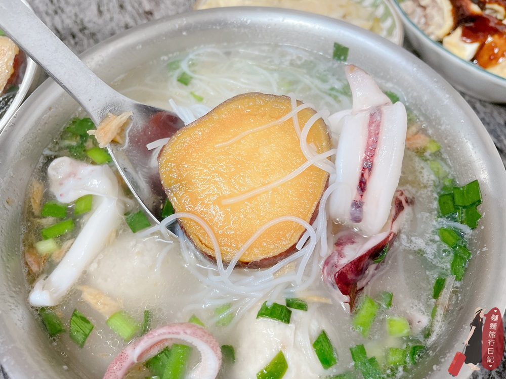 米粉跟台南的粗米粉不一樣,村長更愛這種米粉!米粉吸滿雞湯跟小卷的鮮,很耐人尋味簡單的在地小吃呀~