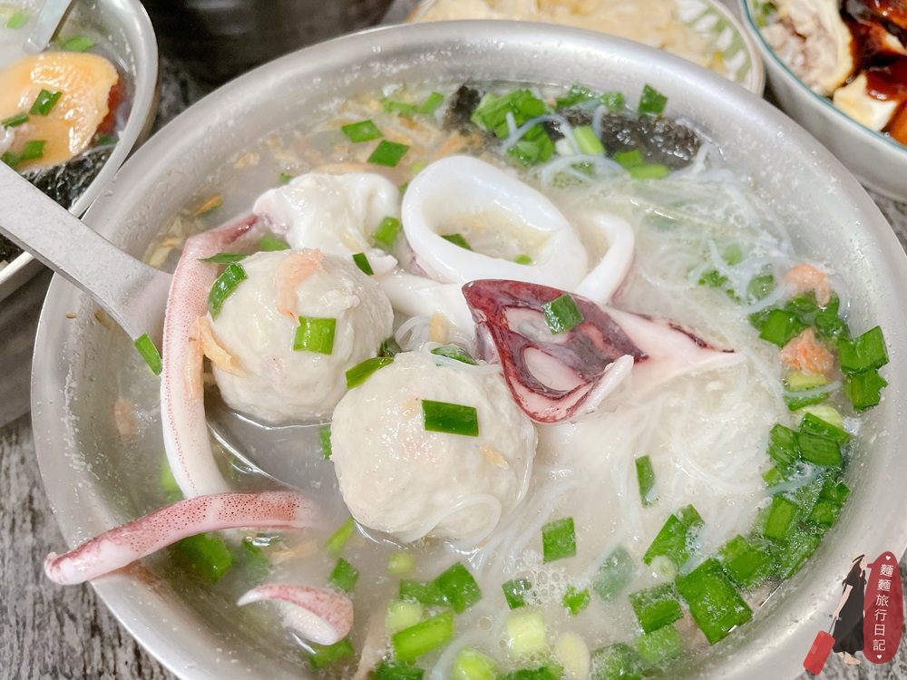 裡面可是有滿滿的料,好像在挖寶,挖到兩顆超大顆的虱目魚丸,吃起來紮實鮮美好吃。