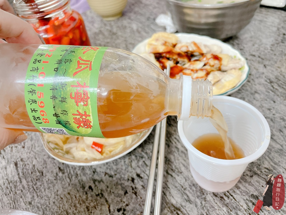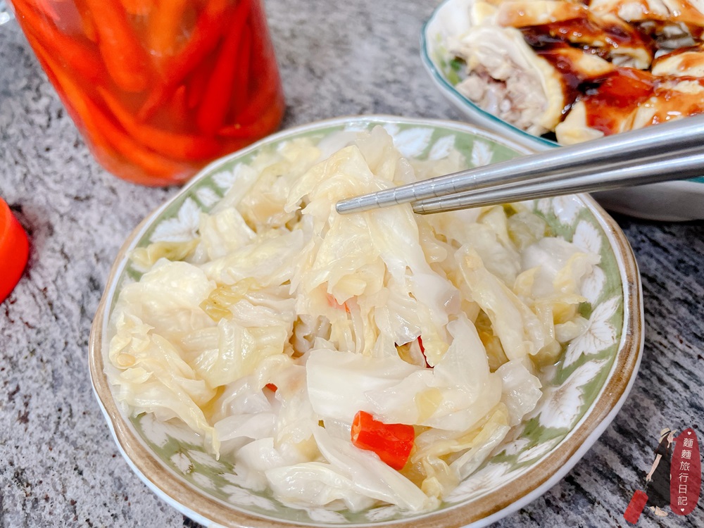 雖然只有賣雞湯小卷米粉跟什錦雞湯米粉,但是冰箱裡有很多小菜可以拿,有泡菜、龍鬚菜、木耳、煙燻豆皮、土雞肉,還有飲料檸檬汁!老闆自己醃的水果泡菜、醃泡椒都是吃雞湯小卷米粉絕配的小菜!