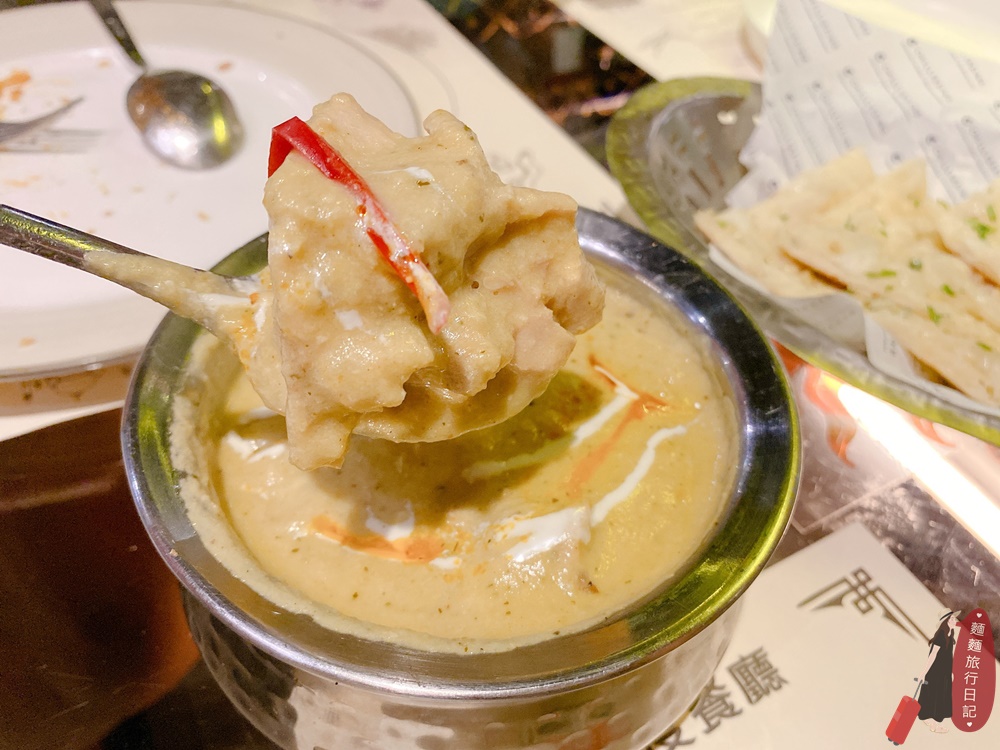 印度烤餅怎麼能沒有咖哩呢!咖哩我們點的是白醬雞肉,完全不辣喔~
