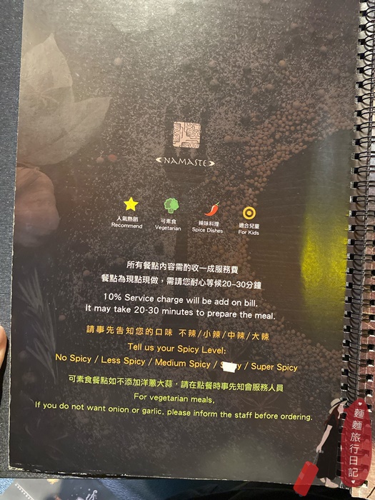 跟吃泰國料理一樣,點餐要告知辣度~好想吃辣辣的印度料理,一定會很夠味很好吃!但帶著小孩只能不辣或微微辣!另外印度料裡中加了大量的辛香料,如果吃素的人可以先告知不要添加大蒜跟洋蔥。