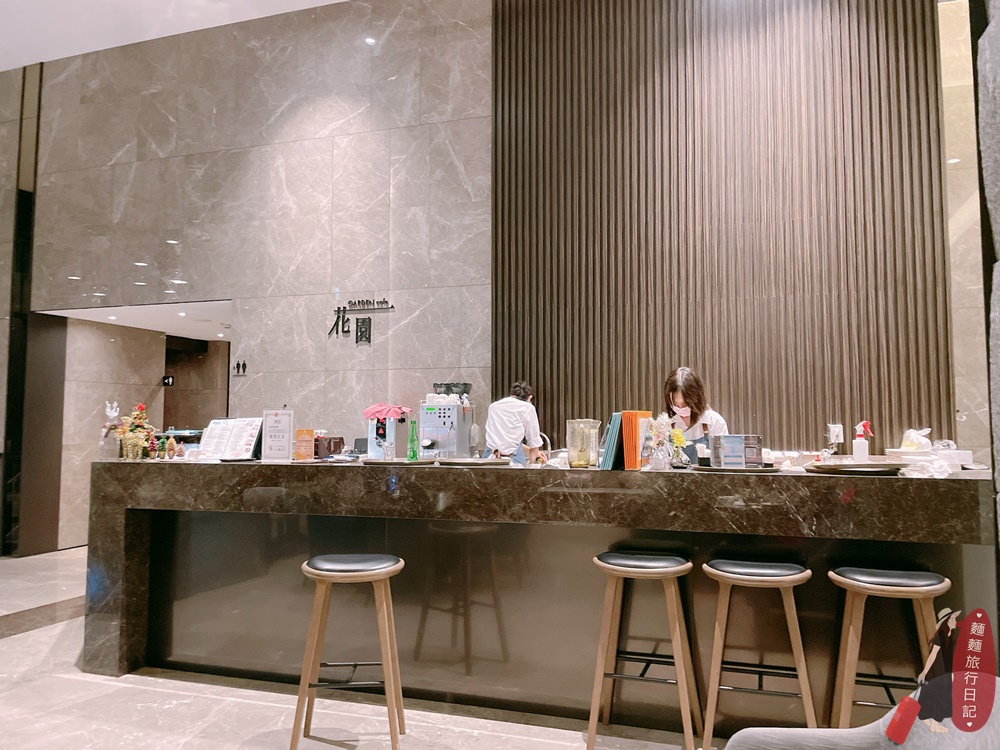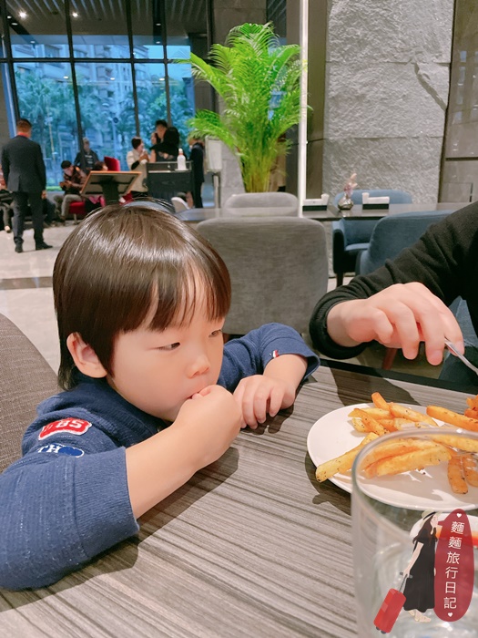 花園咖啡廳就在酒店大廳裡,有室內座位區跟戶外座位區,餐廳裡也有提供兒童座椅。