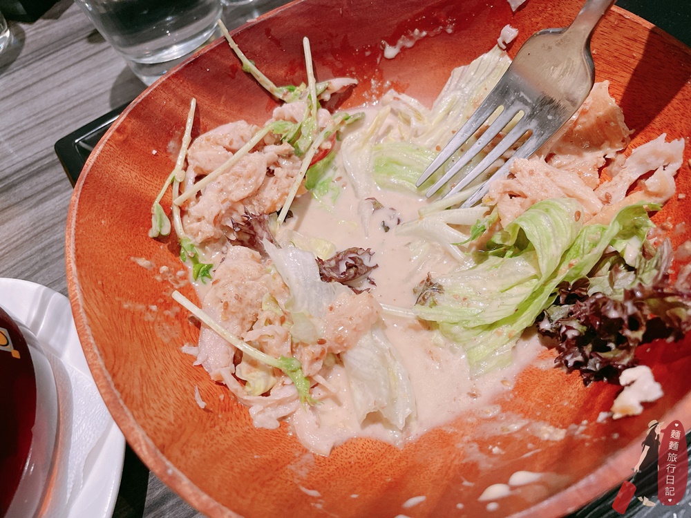 沙拉很不OK,醬過多、還超鹹,然後下面剩下滿滿的醬,跟菜葉上的水!😨