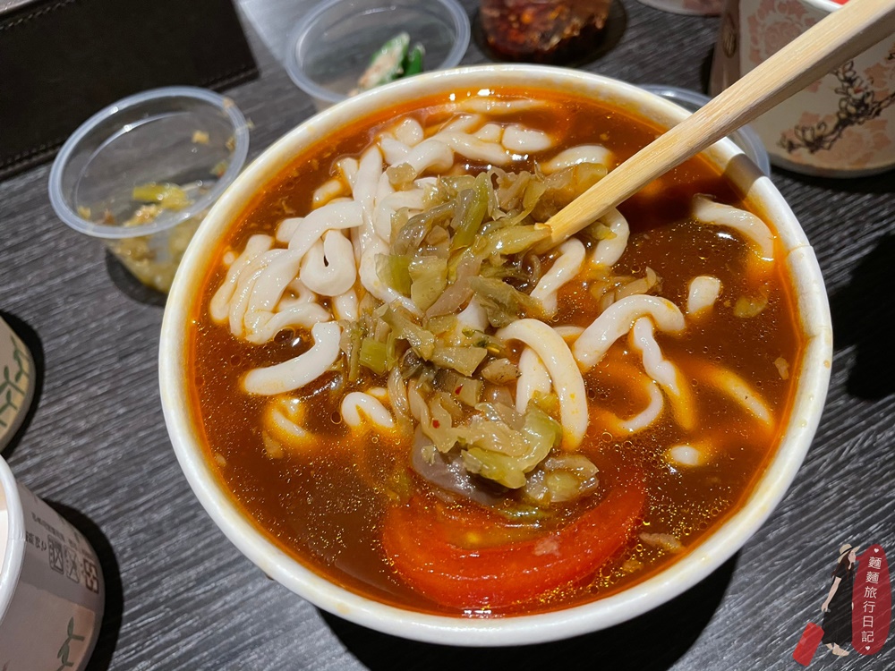牛肉麵的麵條可以選粗細,喔莫喔莫!!!這碗牛肉麵值得大家專程來碧潭小旅行,真心不騙,沒想到外帶也沒什麼影響牛肉麵本身,好好吃呀!先來說說牛肉,有筋有肉、而且很大塊啊~肉給的也很大方有四~五塊吧!牛肉非常軟嫩、入口即化!真的猴賽雷!湯頭是紅燒的,湯頭更厲害了!非常濃厚的紅燒湯頭,你光是用湯匙在那邊喇就感受的到濃稠感,以為喝下去會很有負擔!結果並、沒、有、驚為天人啊啊啊這個湯根本滑順到不行,非常之順口!好吃到流淚!只能說來對了,為了這碗白金招牌牛肉麵,我願意大老遠跑來新店!