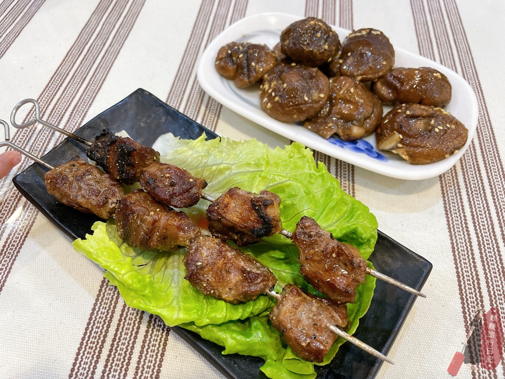 除了手抓飯我們還單點了一些想吃的烤物,烤香菇物美價廉啊!60元這麼一大盤,香菇味道也超好超多汁,牛肉串也很好吃噢!