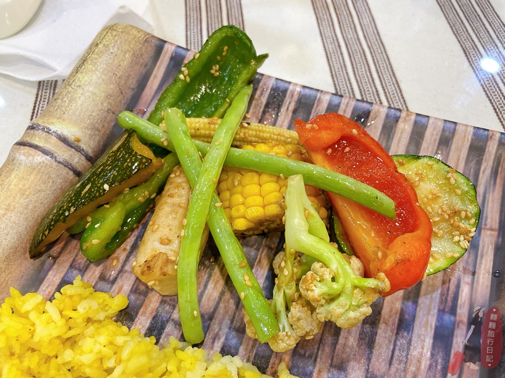烤食蔬的蔬菜也很多樣化,時蔬種類很多,烤完後淋上特調醬料簡單的美味料理真心好吃。