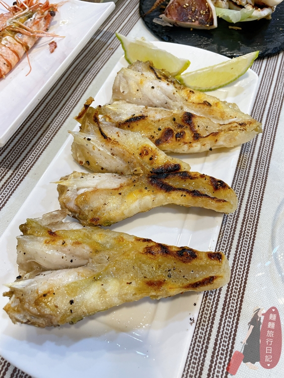 除了肉,也點了些海鮮,像是烤魚下巴,魚下巴的油脂被烤出香味撲鼻、魚肉細嫩,簡單調味就很鮮美。