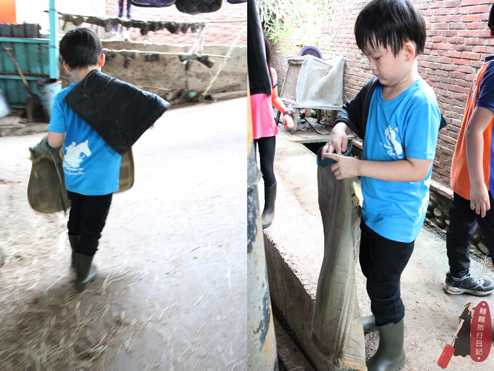 每天騎完馬下馬後,每組都還要幫馬兒下裝備、收拾整理裝備、幫馬兒洗澡,這就是馬術夏令營波仔每天都必做的日常篇喔!除了可以跟馬兒培養感情、更親近點之外,還能幫馬兒保養毛髮,一兼二顧,摸蜊仔兼洗褲XDD,村長每天看到波仔洗馬、刷馬在夏令營過得這麼充實滿是欣慰,但想到晚上要幫他洗衣褲就……欲哭無淚啊!