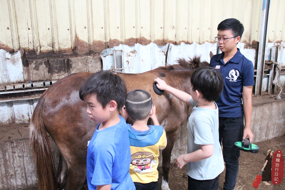 上馬之前波仔跟他的小夥伴們每天都會來給馬兒刷毛,刷毛是跟馬接觸、培養感情不可或缺的日常之一,刷毛的時候可以整理毛髮外,還能起到按摩的效果,真的是好棒棒,培養感情從按摩開始(那不就跟夫妻一樣)(歪摟😅)。