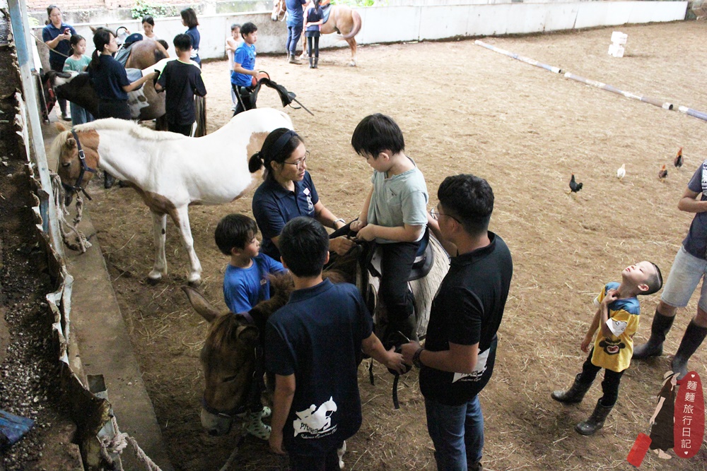 耐心地講解示範,比較頑皮、不認真聽課的小朋友就會像波仔那樣受到教練的特別關愛與獨寵😂,會先把他單獨拉到一邊跟他講道理、溝通,詢問他是否要跟其他小朋友一起上課,我覺得這些教練除了對馬有一套外,對小孩也很有一套,害我很想把小孩放生在這裡一個月!