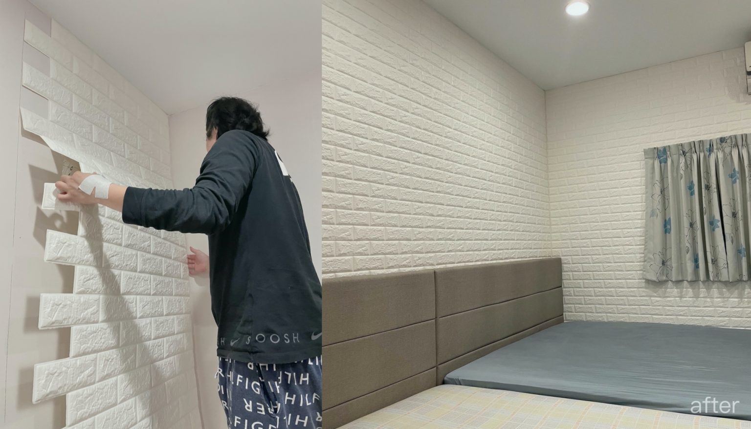 (是說我覺得泡棉3D磚塊壁貼最適合手殘黨!隨便貼也看不出接縫啊)