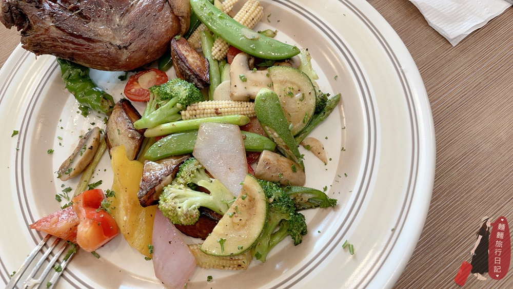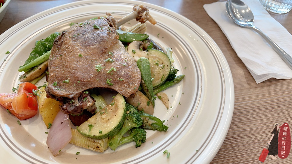 我們還點了法式油封鴨,鴨肉之軟嫩!鴨胸下滿滿的蔬菜~我好愛營養超級均衡!