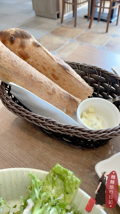 拜託愛吃麵包的人真的要點份小島廚房的手工麵包來吃,麵包超級大根厚實,麵包外表非常酥脆,裡面的麵包軟Q到不行啊!配上奶油大蒜抹醬,根本神仙美味!
