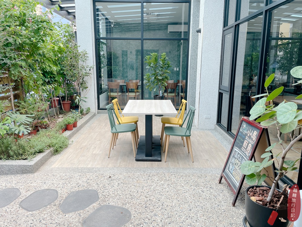 前庭有一個戶外座位區,不用擔心直接面門口,用餐時會被路過的路人觀賞,座位區前面種植了一整排綠色植栽,戶外座位也有隱私唷!