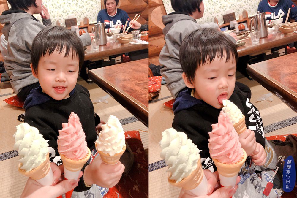 最後還有飯後甜點是一球袖子冰淇淋,如果想吃上方的聖代冰淇淋,可以付 ¥300 日幣加點~