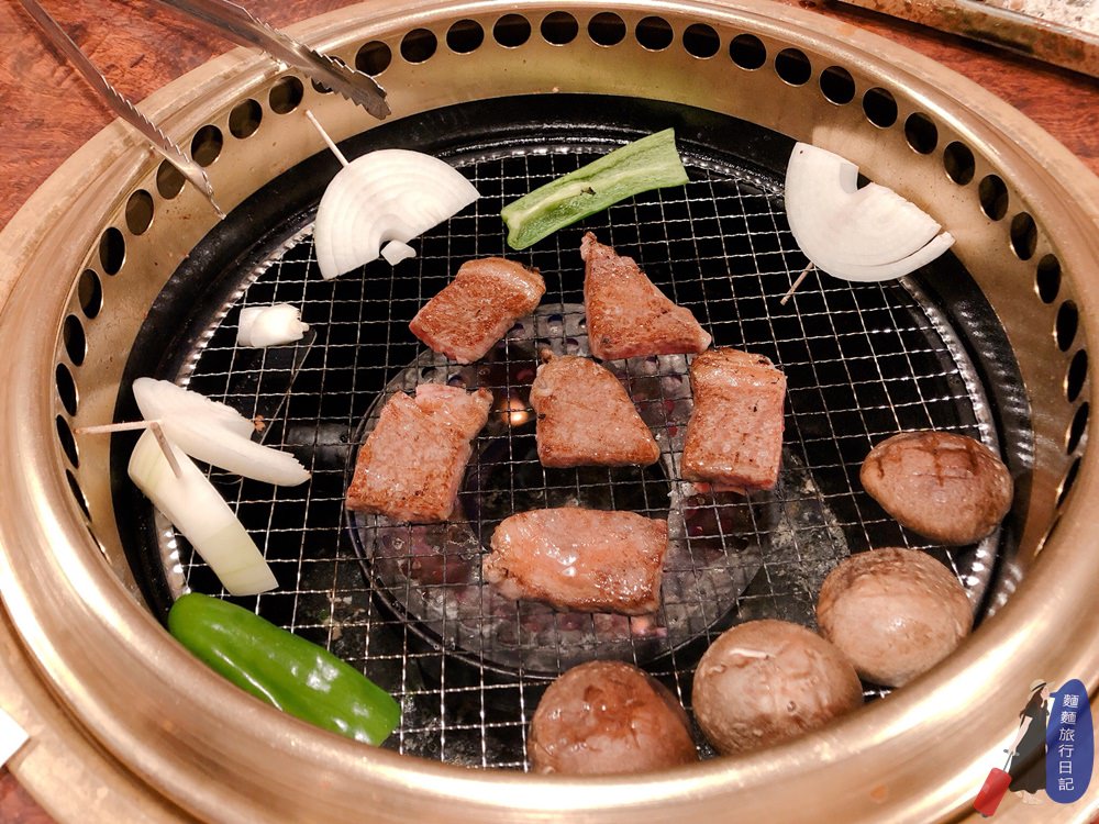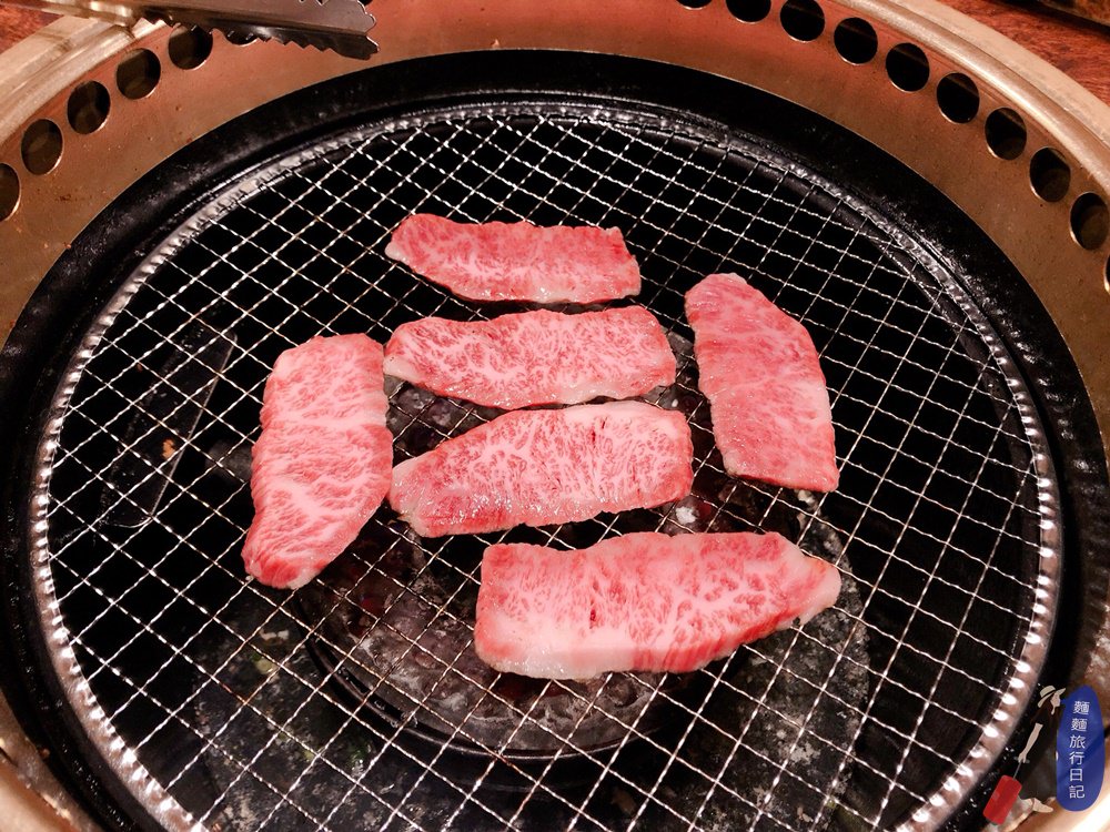 肉肉烤起來,油花分布真的太美,就算是薄的肉片,還是有一點厚度,吃起來好爽啊!