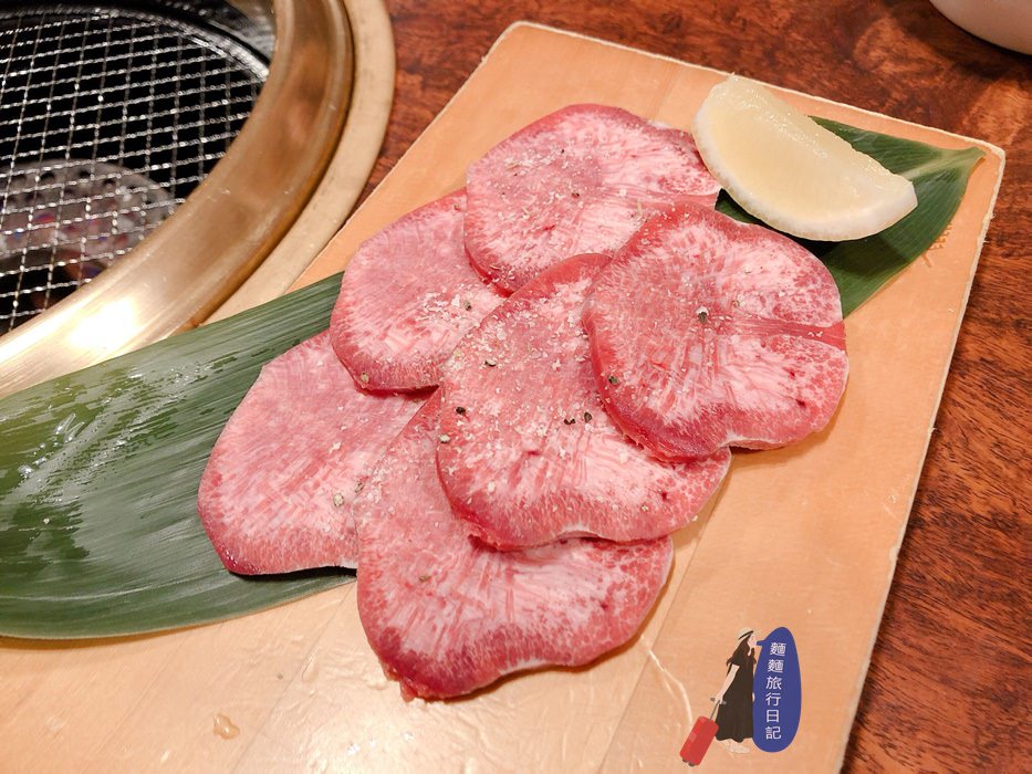 必點我最愛吃的牛舌,這牛舌不是薄片的喔,有點厚度,脆脆的很好吃!上面已經有撒上鹽巴跟黑胡椒粒了,烤完可以不沾醬直接吃。