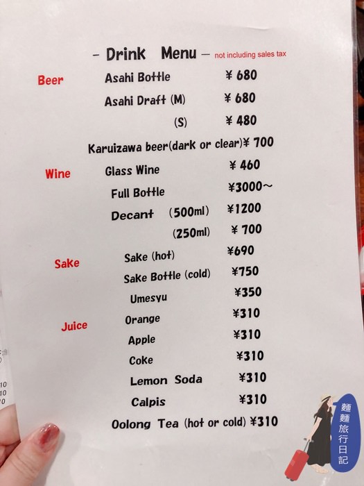 最後則是飲料菜單,有啤酒、各式酒類跟飲料果汁。