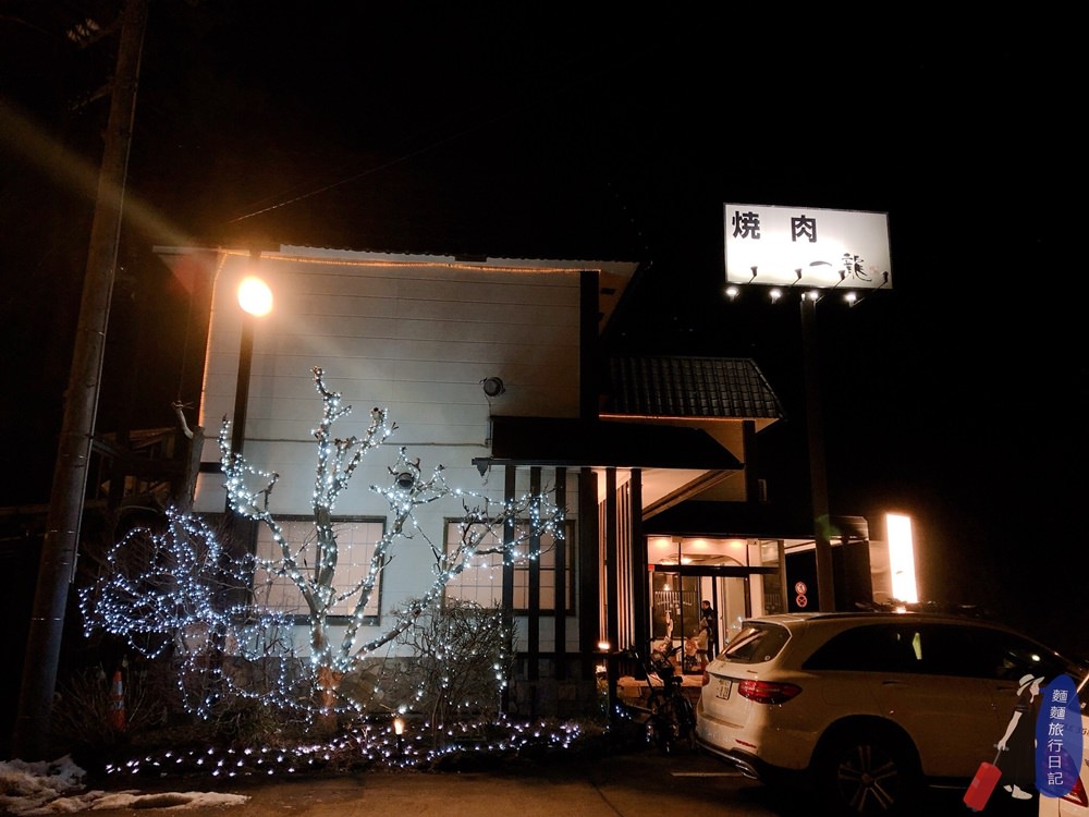滑完雪後滿心期待吃燒肉,餐廳的外觀很像一般日本人的民宅房子,日式木屋建築。