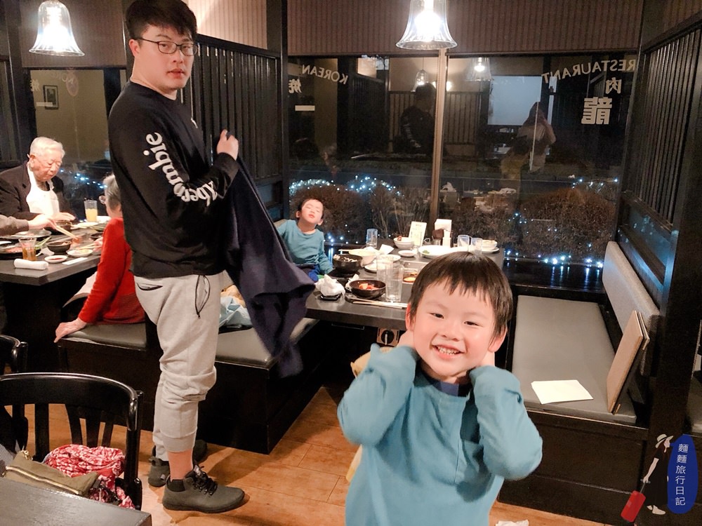 5點半吃晚餐算滿早的,沒想到店裡面已經很多人在用餐了呢!而且餐廳裡都是日本人,完全沒有觀光客還是外國人,看來這間燒肉店深受當地人的喜愛啊!一家人剛滑完雪超狼狽,兩隻小屁孩餓到不行!