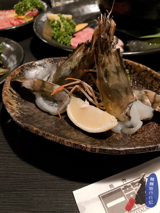好像每次吃燒肉都會點蝦子給小屁孩吃,因為每次問他們要吃啥,他們都會說我要吃蝦蝦….,蝦子去殼但有留蝦頭跟蝦尾,還擺盤了,很精緻。