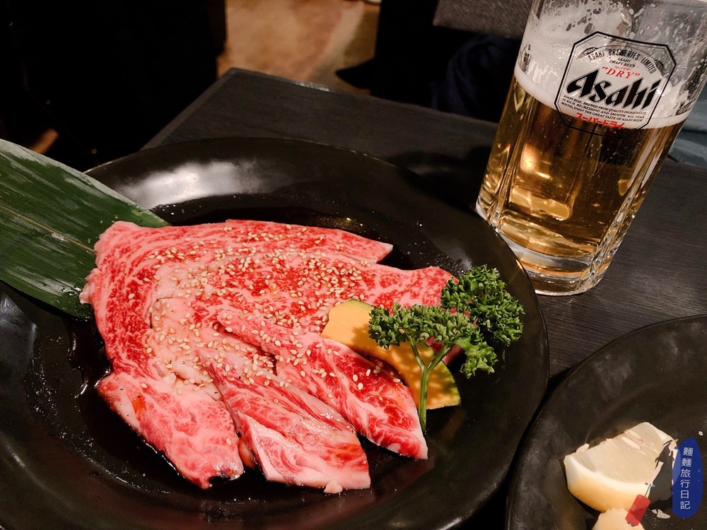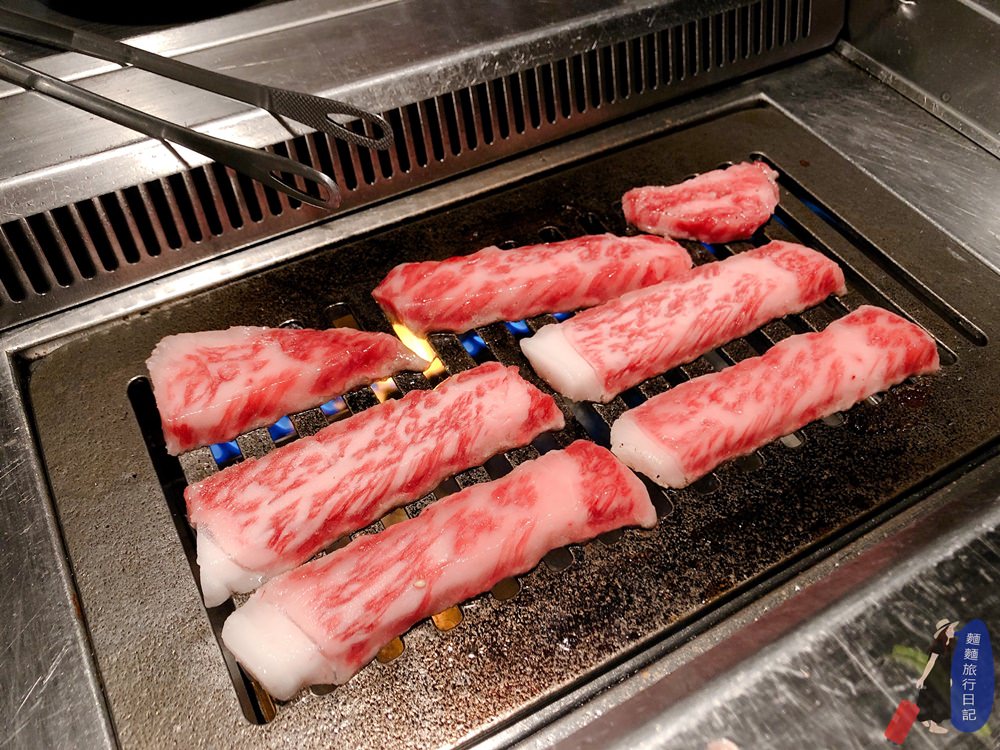 這牛肉超級鮮紅可口,這樣說很像什麼食生肉的老妖女喔!XDD 點了一盤特上肋骨牛肉,看起來超級好吃,事實上也超好吃,這牛肉端上來時,只撒了芝麻跟淋一些醬油而已,烤起來簡直無法無天了,完全沒有牛騷味、吃起來鮮甜可口好吃!