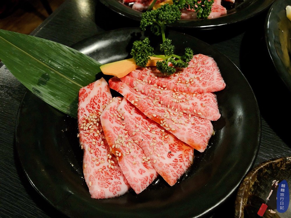 這盤也是A5和牛的里脊肉,這份牛肉的油花更誇張,有看到這油脂分布的多美嗎!?光看就知道這牛肉吃起來有多軟嫩了吧!簡直入口即化啊!不可思議的神燒肉!