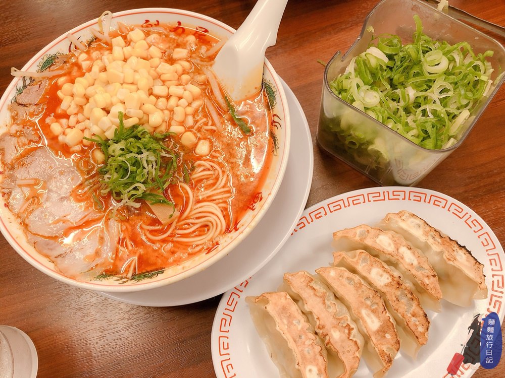 我每次吃拉麵必點辛辣口味,所以我點了一碗辣味噌口味的拉麵,熬製的湯頭加上味噌跟香辣,湯頭喝起來更有層次更好喝,香辣好吃,很唰嘴,細麵沾滿湯汁,讓人一口接一口的狂吸麵,另外點的餃子沒有搭配套餐,是單點,因為餃子套餐會多一碗白飯啊!太飽了,餃子外皮煎的酥脆,皮薄內餡多汁好吃。
