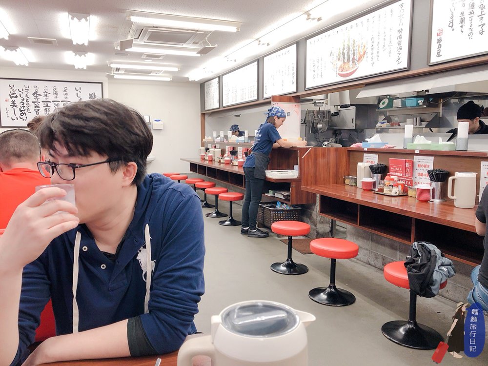 這個套餐很棒啊!選一碗你喜歡的拉麵口味後,可以加 ¥ 230 日幣,升級變成套餐,就是一碗拉麵配上一份炒飯,這裡我們選了鹽味拉麵,鹽味拉麵的湯頭沒有加豬背脊油脂調味,取食材的天然原味為主的一碗拉麵,湯頭還是很濃郁,喝得出大骨熬製的鮮甜味,這碗拉麵很適合小朋友吃,點給波仔跟樂樂吃,很健康。